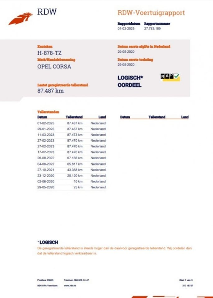 Kilometerstand gecontroleerd