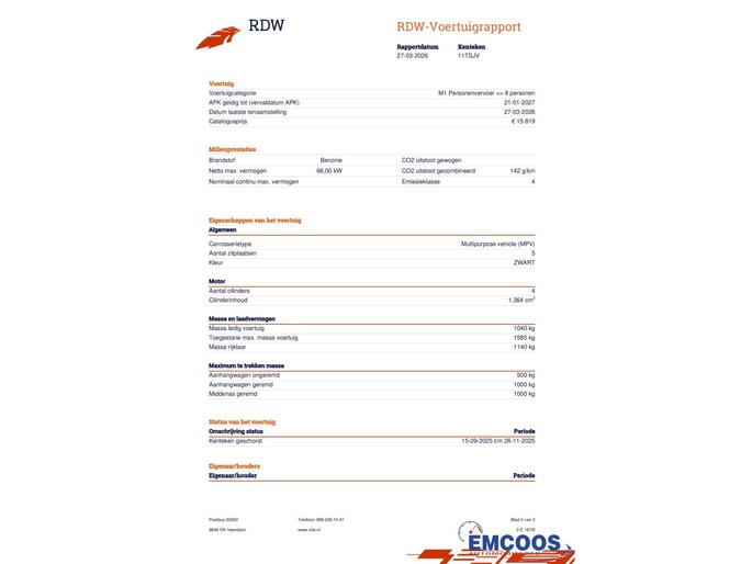 | Wegenbelasting/3mnd | € 119 - € 129 |