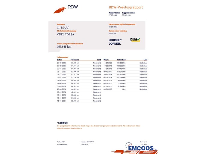 Kilometerstand gecontroleerd