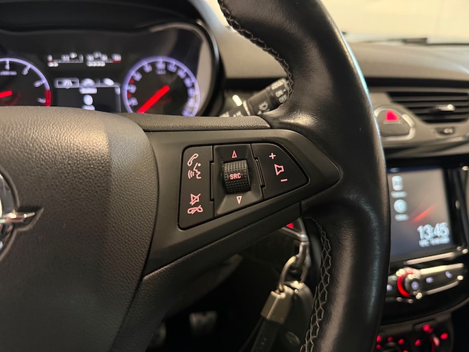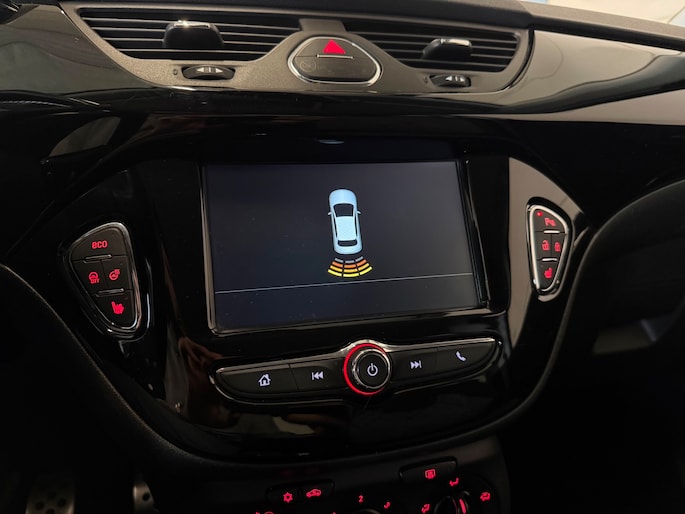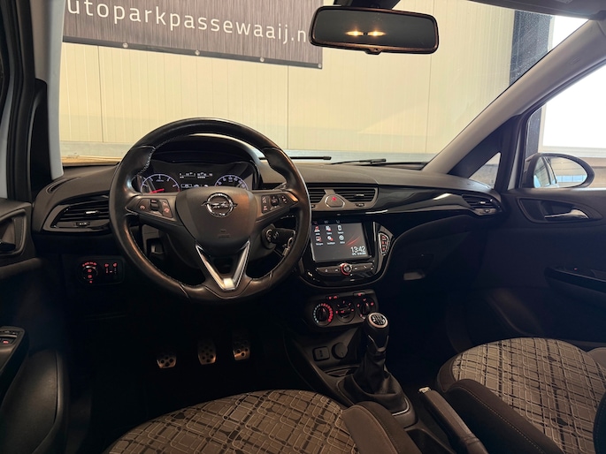 De grote, zwarte lichtmetalen velgen geven deze Corsa een extra sportieve en stoere uitstraling. Naast het visuele aspect dragen ze ook bij aan een stabiele en comfortabele wegligging.