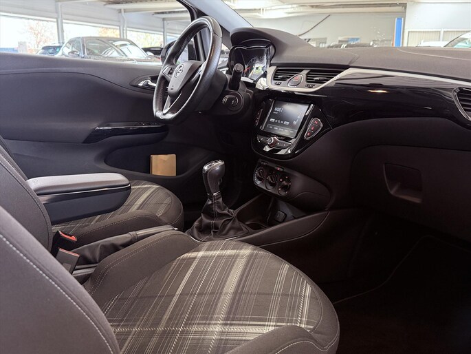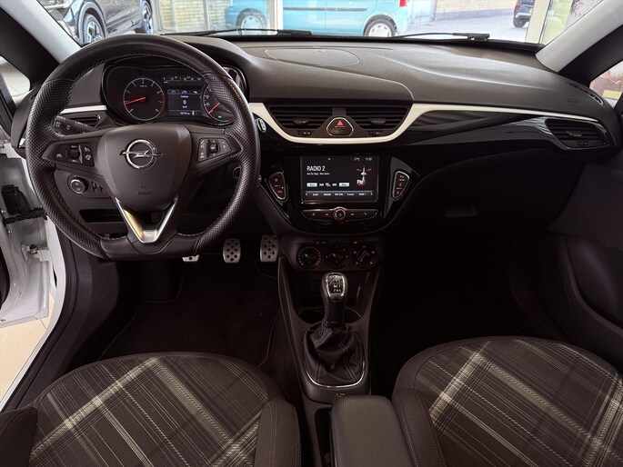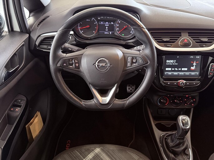 Een belangrijke veiligheidsvoorziening is de bediening van het audiosysteem via knoppen op het stuur. Dab-ontvangst geeft daarbij een kraakheldere ontvangst. Parkeersensoren ondersteunen u tijdens het in- en uitparkeren. Deze Opel Corsa is voorzien van een regensensor, zodat de ruitenwissers altijd de juiste snelheid hebben. De cruise control zorgt voor een prettige, gelijkmatige koers en minder brandstofgebruik. Ja, ook airconditioning is in deze auto aanwezig. De Opel is standaard voorzien van: buitentemperatuurmeter, centrale deurvergrendeling met afstandsbediening, toerenteller en bagage afdekhoes.