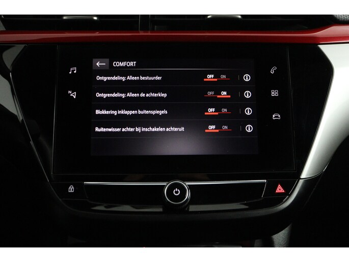 Zoals u mag verwachten van deze Opel Corsa is hij uitgerust met een reeks aan actieve veiligheidssystemen. De camera van de verkeersborddetectie herkent verschillende soorten verkeersborden en toont deze op het dashboard. Met het Lane-keeping systeem komt u nooit per ongeluk buiten de rijstrook. De sensor van het forward collision warning-systeem registreert permanent de afstand tot voorliggers en grijpt in als een botsing dreigt. De veiligheid van deze auto wordt verder verhoogd door accident avoidance system, hill hold functie, vermoeidheidsherkenning en bandenspanningcontrolesysteem.
