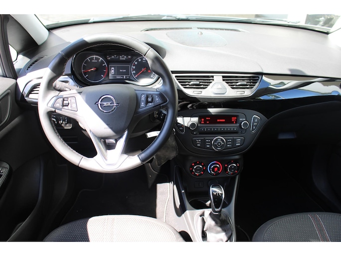 Deze Opel Corsa is voorzien van remote services. Via uw smartphone bedient u diverse functies ook op afstand en krijgt u informatie over de status van uw auto. U bedient het full map navigatiesysteem en het audiosysteem met DAB-radio via knoppen op het stuur, of zelfs met uw stem. Zo kunt u steeds uw aandacht gericht houden op de weg. Het spreekt voor zich dat een auto als deze ook van electronic climate control is voorzien. Inparkeren zonder angst voor schade. De parkeersensoren helpen u om moeiteloos in de kleinste parkeervakken te manoeuvreren. De automatisch inschakelbare verlichting en regensensor zorgen dat onderweg automatisch de verlichting en de ruitenwissers worden ingeschakeld. Daarmee nemen ze u veel werk uit handen. Met cruise control, automatisch dimmende binnenspiegel, lederen stuur, centrale deurvergrendeling met afstandsbediening en boordcomputer is deze Opel helemaal compleet.