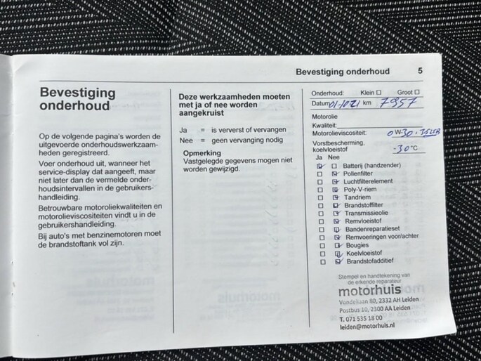 Schema onderhoudsbeurt