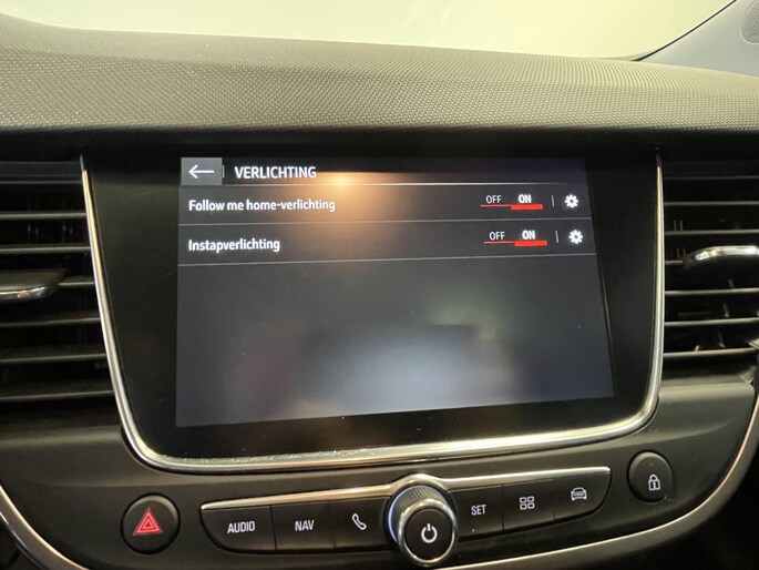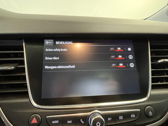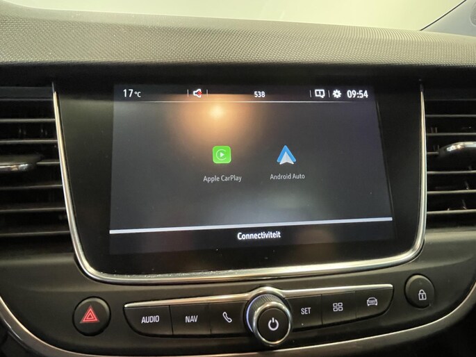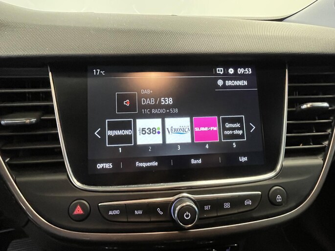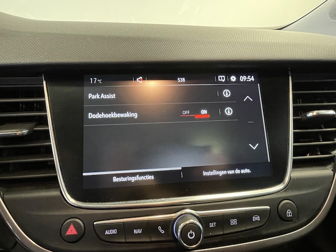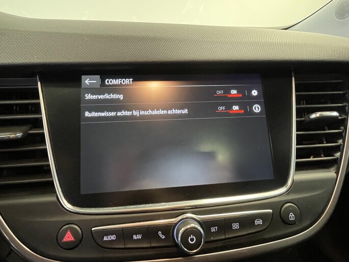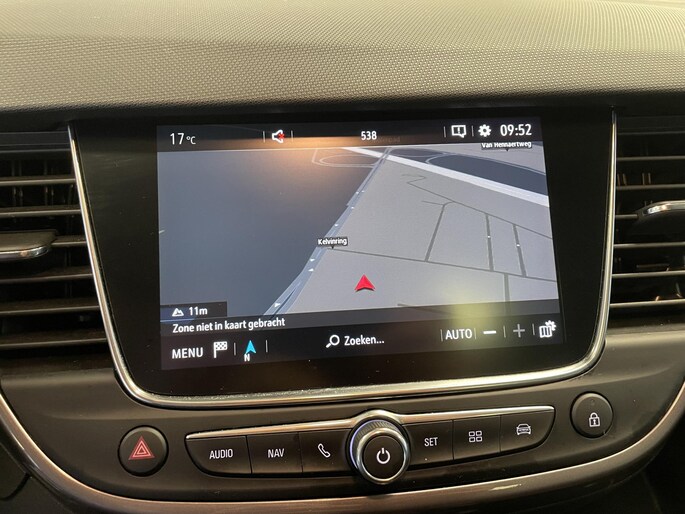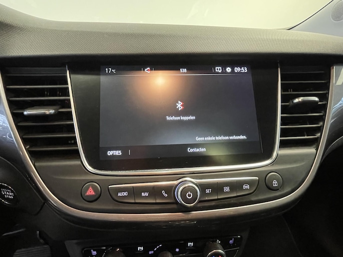 De achteruitrijcamera vergemakkelijkt achteruit inparkeren. U ziet duidelijk wat er achter de auto gebeurt. In deze Crossland X vindt u schakelaars op het stuur om het full map navigatiesysteem te bedienen en het audio-installatiesysteem met DAB-ontvangst. De automatische airconditioning zorgt voor een behaaglijk klimaat in de auto. De auto neemt u werk uit handen doordat hij zelf veel in de gaten houdt. Een regensensor en een automatisch inschakelbare verlichting nemen waar wanneer de ruitenwissers en het licht aan moeten. De cruise control betekent gemak, comfort en zuinig rijden. Ook keyless entry, automatisch dimmende binnenspiegel en isofix-aansluiting zijn aan boord.