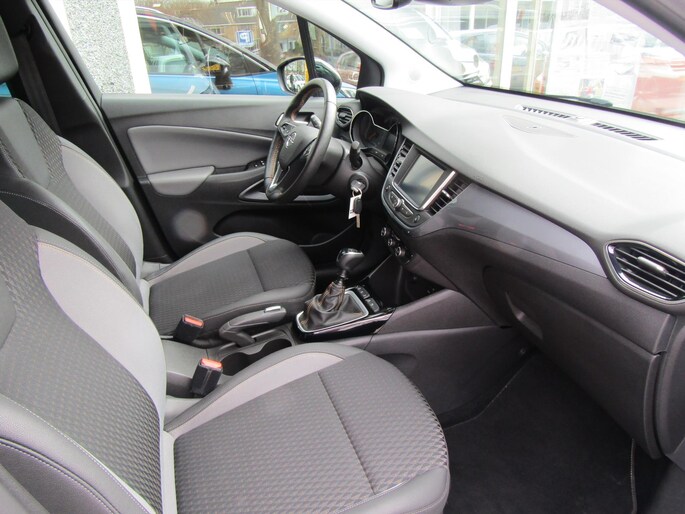 Het premiumgevoel dat deze Opel Crossland X u geeft, is het gevolg van ver doorgevoerde kwaliteit in ieder facet. De uitgekiende techniek, de gedistingeerde vormgeving, het hoge afwerkingsniveau, het benadrukt allemaal het hoge niveau van deze auto. De aandrijving van deze Opel wordt verzorgd door een driecilinder benzinemotor en een handgeschakelde zesversnellingsbak. Bij de uitrusting van deze auto horen onder meer 16 inch lichtmetalen velgen, LED koplampen, in delen neerklapbare achterbank en snelheidsafhankelijke stuurbekrachtiging.