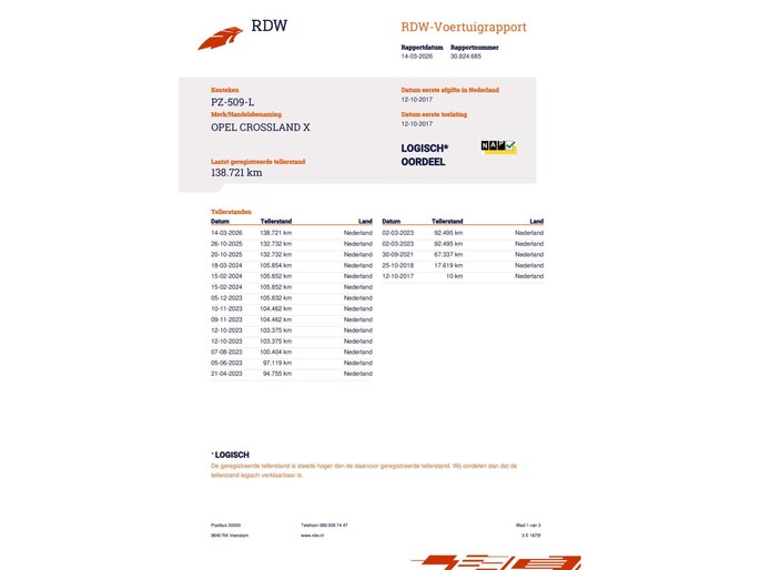 Kilometerstand gecontroleerd