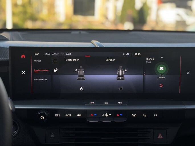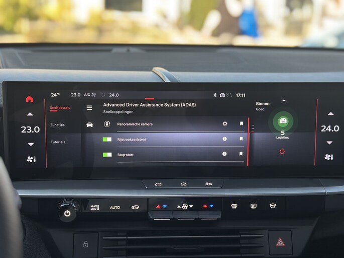 De Opel Grandland is ook voorzien van ADAS. Deze Advanced Driver Assistence Systems fungeren als extra ogen en oren: ze houden voor u de weg in de gaten en grijpen in wanneer dat nodig is. Recht voor u ziet u de weg én alle dashboardinformatie dankzij de head-up display Verkeersbord-detectie herkent verkeersborden en toont deze op het instrumentarium van de auto. Het Lane-keeping systeem zorgt voor een automatisch constante positie binnen de rijstrook. Afdwalen is uitgesloten. De veiligheid van deze auto wordt verder verhoogd door dodehoekdetectie, hill hold functie, vermoeidheidsherkenning en autonoom remsysteem.