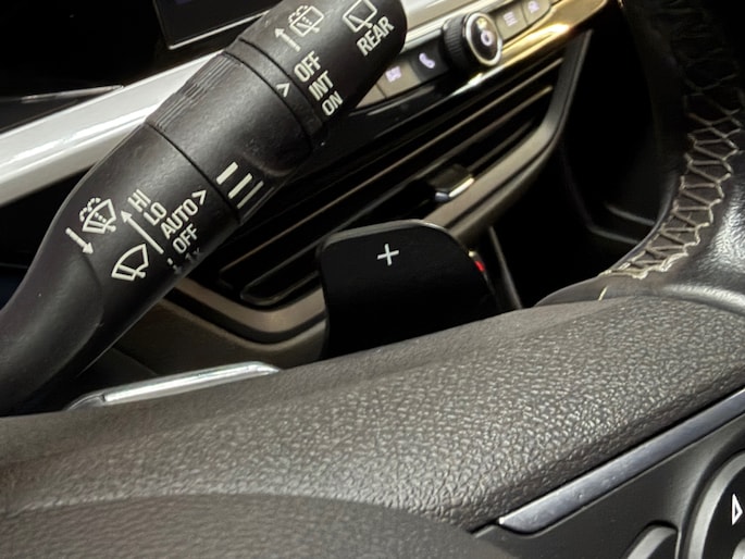 Het digitale dashboard is niet alleen enorm fraai en handig, maar draagt actief bij aan een veilige en slimme rit. Elk van de vier camera's op deze auto draagt bij aan het creëren van een onbelemmerd uitzicht van 360 graden rondom de auto. Als u de adaptive cruise control inschakelt, regelt de auto zelf de snelheid en de afstand tot de auto voor u. Dankzij Connected Services weet u precies waar uw auto geparkeerd staat. Ook andere functies, zoals bandenspanning en brandstofniveau, zijn via de app altijd onder handbereik. Laat u onderweg niet afleiden, de bediening van het audiosysteem en ook het navigatiesysteem gaat met knoppen op het stuur. Natuurlijk is de audio-installatie voorzien van DAB-ontvangst. En deze auto heeft ook electronic climate control, sportstuur met schakelpaddels, regensensor, automatisch dimmende binnenspiegel, centrale deurvergrendeling met afstandsbediening en boordcomputer als standaard uitrusting.