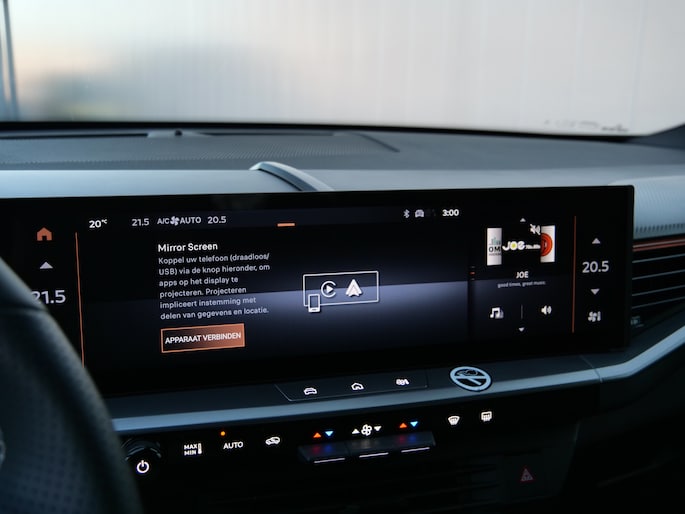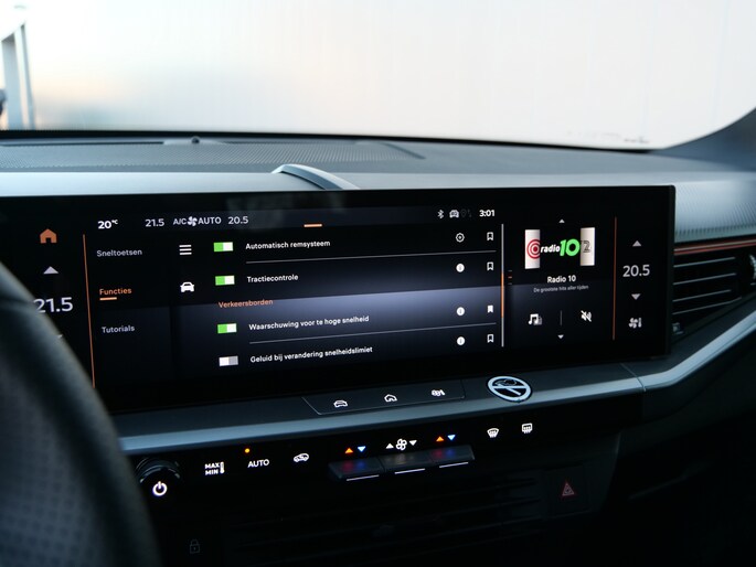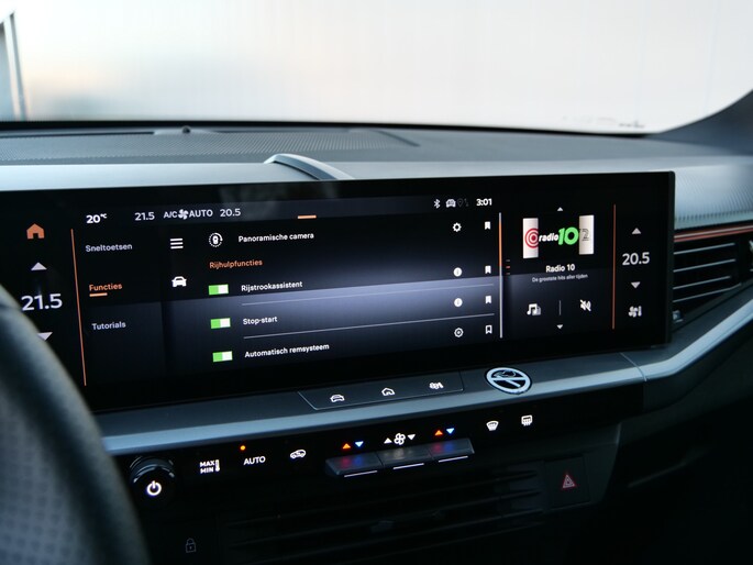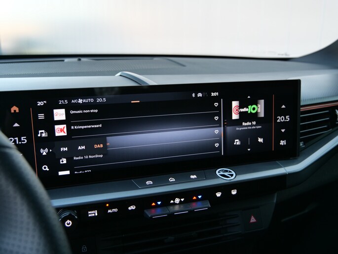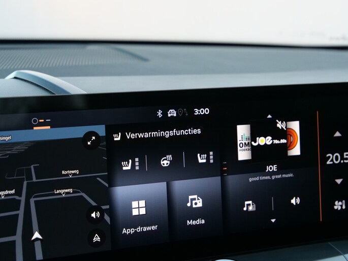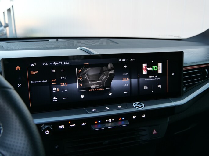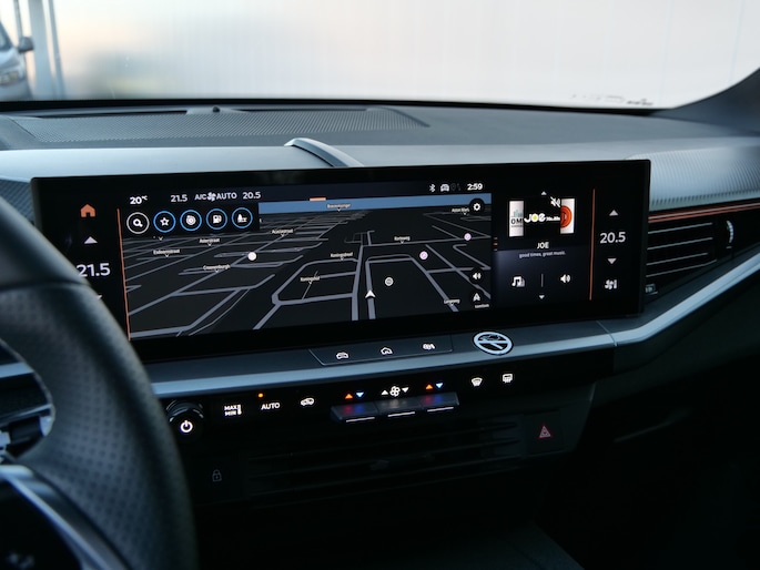 Het slim uitgedachte digitale dashboard toont alle essentiële ritinformatie in één oogopslag. Achteruitrijden en inparkeren worden een eitje dankzij de achteruitrijcamera. Deze auto gaat met u in gesprek. Hij vertelt u dankzij remote services alles over de status van diverse onderdelen en laat zich desgevraagd ook activeren. Gewoon via uw smartphone. Een goede veiligheidsvoorziening is de spraakbediening en stuurbediening voor belangrijke functies. De auto is natuurlijk voorzien van een full map navigatiesysteem en het audiosysteem biedt glasheldere geluidskwaliteit dankzij DAB-ontvangst. Is uw smartphone geschikt voor snoerloos opladen? Dan zorgt de draadloze oplaadmogelijkheid voor telefoons weer voor een volle accu zonder snoeren en stekkers. En deze auto heeft ook electronic climate control, schakelpaddles aan het stuur, regensensor, cruise control, keyless entry en automatisch dimmende binnenspiegel als standaard uitrusting.