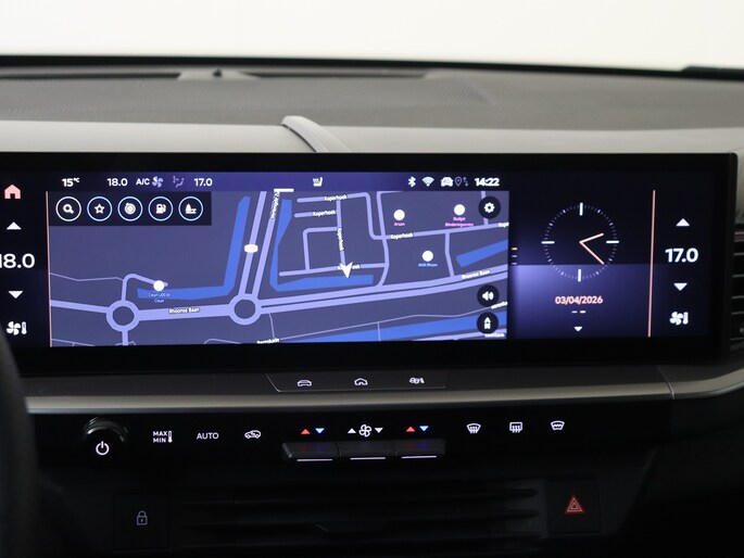 Het digitale dashboard vertelt je alles wat je wilt weten voor een slimme, comfortabele en veilige rit. De achteruitrijcamera vergemakkelijkt achteruit inparkeren. Je ziet duidelijk wat er achter de auto gebeurt. Als je de adaptive cruise control inschakelt, regelt de auto zelf de snelheid en de afstand tot de auto voor je. Als je 'm vraagt 'hoe gaat het?' geeft deze auto zelf het antwoord. Via de app op je smartphone. Je checkt de meters waar je maar wilt, of activeert diverse functies alvast. Je kunt het audiosysteem met DAB-ontvangst en het full map navigatiesysteem bedienen met de knoppen op het stuur of zelf met je stem. En dan is deze auto ook nog eens voorzien van electronic climate control, schakelpaddles aan het stuur, draadloos opladen, regensensor, keyless entry en automatisch dimmende binnenspiegel.