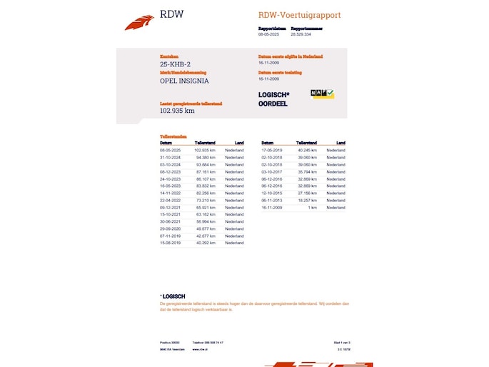 Kilometerstand gecontroleerd