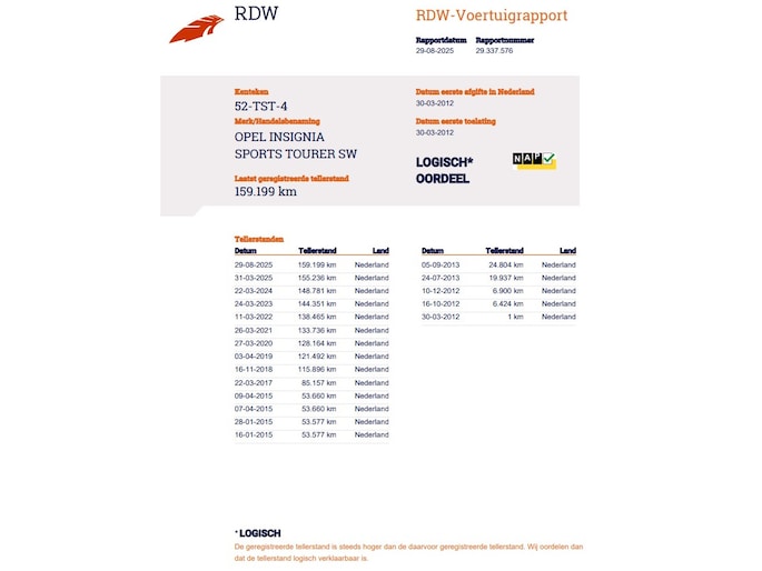Kilometerstand gecontroleerd