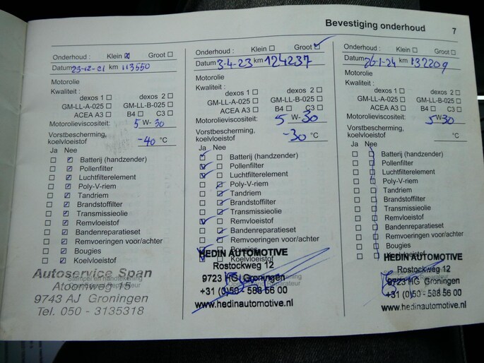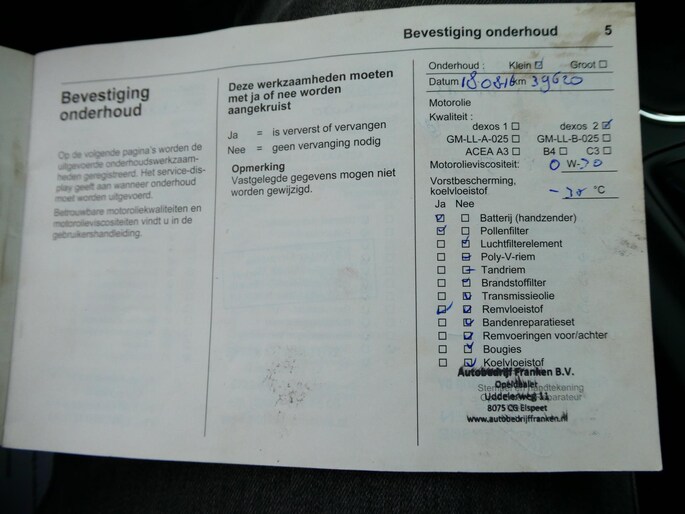 Onderhoudsboekjes: Aanwezig