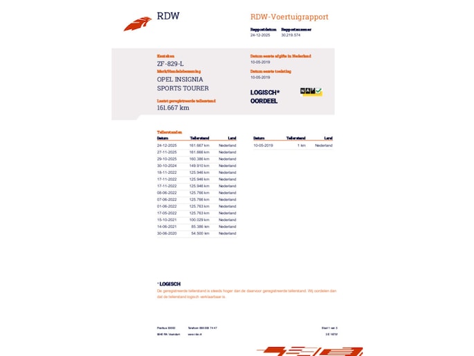 Kilometerstand gecontroleerd