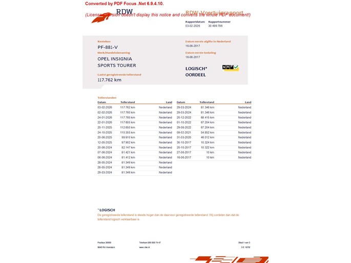 Kilometerstand gecontroleerd
