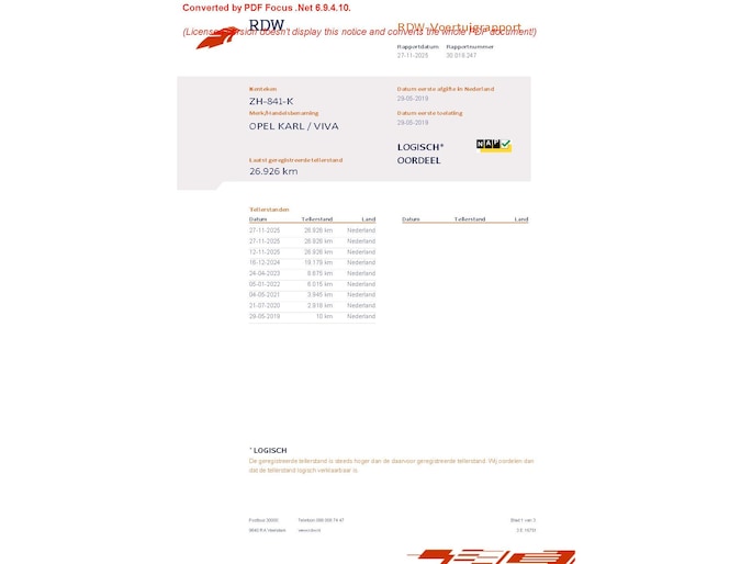 Kilometerstand gecontroleerd