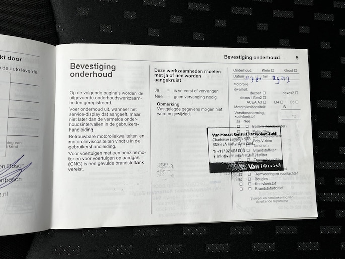 Onderhoudsboekjes: Aanwezig
