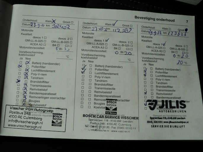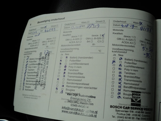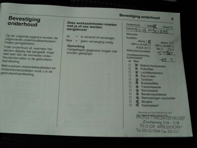 Onderhoudsboekjes: Aanwezig