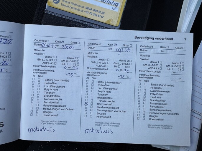 Onderhoudsboekjes: Aanwezig