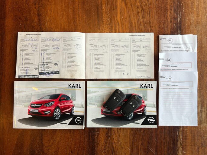 Origineel Nederlands geleverde Opel KARL 1.0 ecoFLEX. Voorzien van o.a. Airco, BT, Elektrische ramen en spiegels, Isofix, Cruise, Start en stop en meer! Inclusief onderhoudsboekje en 2 originele sleutels!