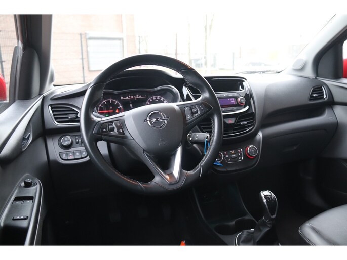 Zoals u mag verwachten van deze Opel KARL is hij uitgerust met een reeks aan actieve veiligheidssystemen. Het Lane-keeping systeem doet precies wat nodig is: waarschuwen en corrigeren bij onbedoelde overschrijding van de rijstrooklijnen. Wegrijden op een helling is kinderspel met hill hold control. Deze functie houdt de handrem automatisch vast op een steile ondergrond.