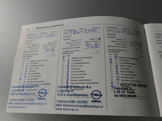 Onderhoudsboekjes: Aanwezig
