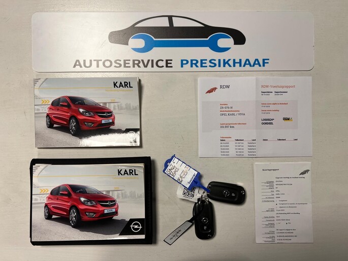 De auto is origineel Nederlands en is voorzien van een NAP-gecontroleerde kilometerstand. Daarnaast zijn de tellerrapport, keuringsrapport, en twee originele sleutels aanwezig. De Opel KARL wordt bij aflevering voorzien van een professionele poetsbeurt, zodat hij er weer fris uitziet.
