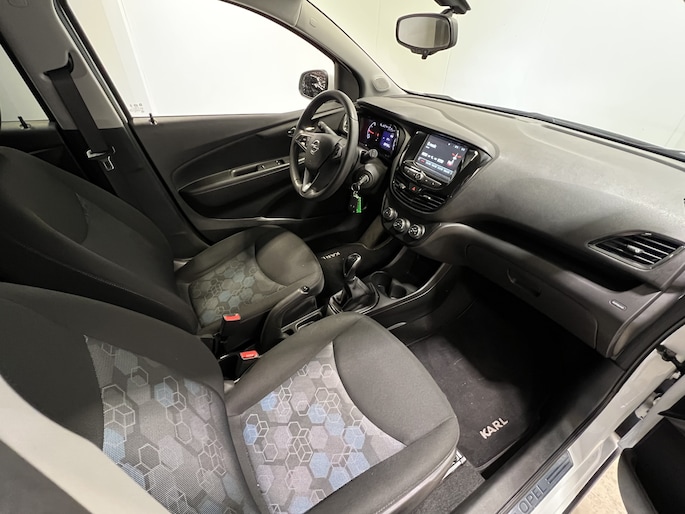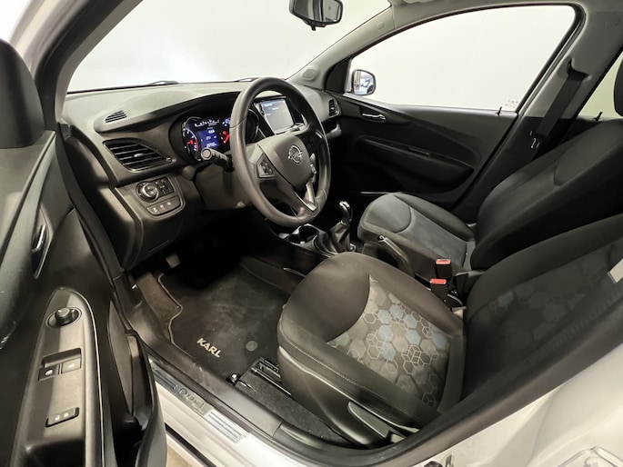 Deze Opel KARL is 'connected'. Belangrijke functies worden permanent gemeten en zijn uit te lezen via een speciale app, ook op afstand. Ook praktisch: deze auto is voorzien van een eigen navigatiesysteem met harde schijf. Mooie extra is de ingebouwde WIFI-hotspot. Altijd en overal online! Audio aan/uit? Andere zender? Volgende track? Even klikken via de audiobediening op het stuur en het is geregeld. Met de DAB-ontvanger luistert u naar glasheldere digitale radio. Natuurlijk behoren WIFI-hotspot, parkeersensoren achter, cruise control, airconditioning, centrale deurvergrendeling met afstandsbediening en boordcomputer ook tot de uitrusting van deze complete auto.