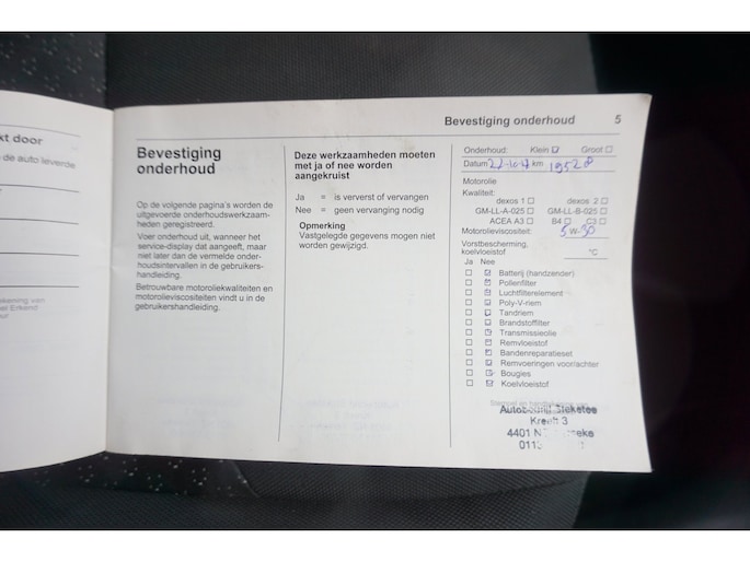 Onderhoudsboekjes: Aanwezig