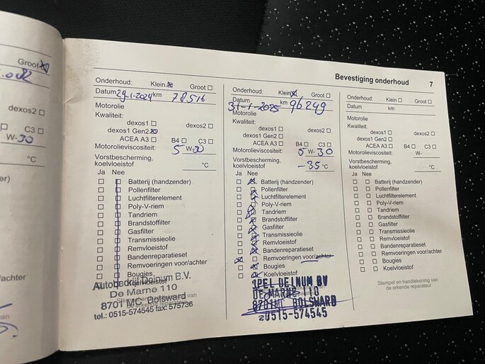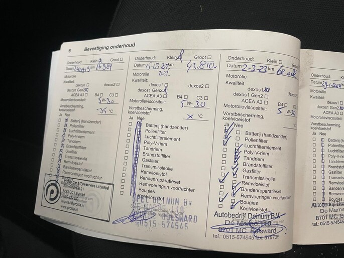 Onderhoudsboekjes: Aanwezig