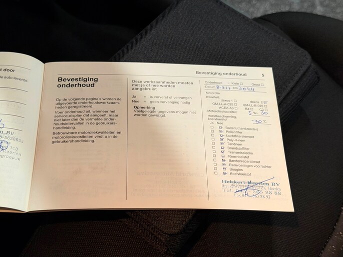Onderhoudsboekjes: Aanwezig