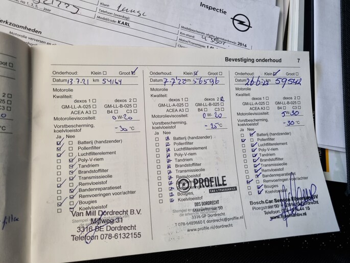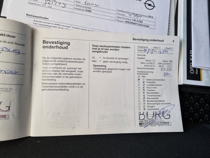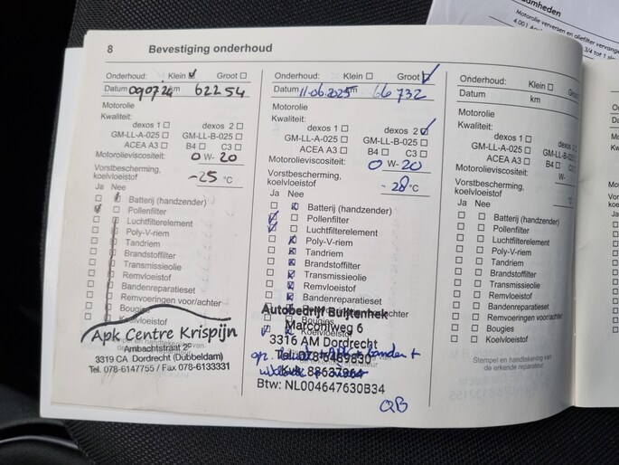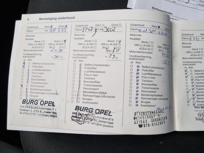 Onderhoudsboekjes: Aanwezig