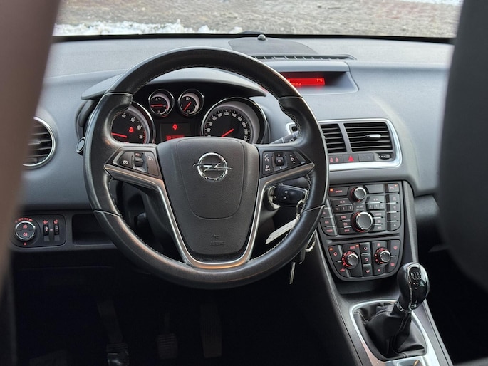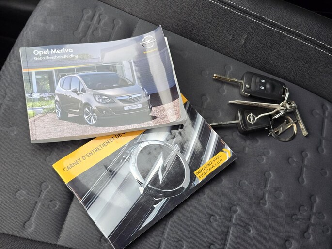 De Meriva is uitgevoerd met diverse luxe opties, waaronder climate control, cruisecontrol, radio met AUX aansluiting en bluetooth voor oproepen, automatisch dimlicht en dimmende binnenspiegel, half-lederen bekleding, parkeersensoren voor en achter, mistlampen, 16 inch lichtmetalen velgen, elektrische ramen en spiegels, een trekhaak en nog veel meer!