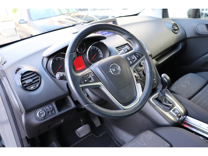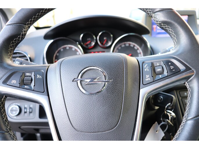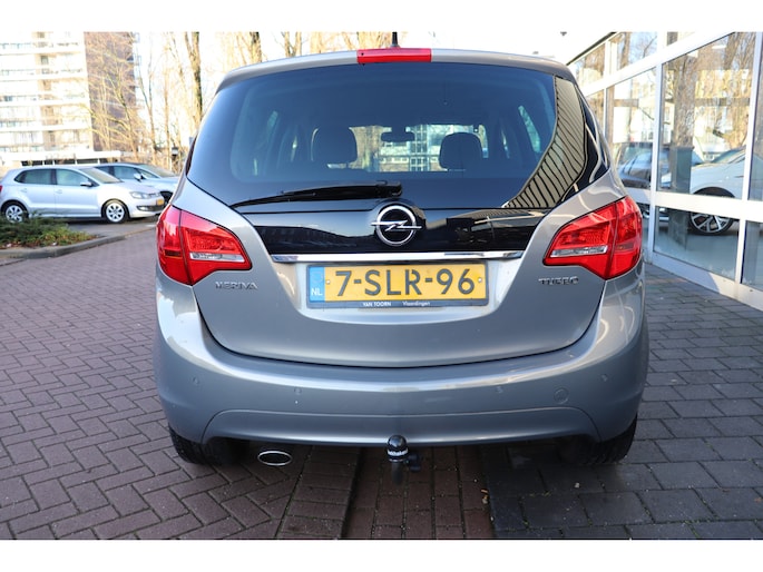 Als u regelmatig met een aanhanger of een fietsendrager op pad bent, is de afneembare trekhaak een praktische extra. In deze auto beschikt u natuurlijk over een navigatiesysteem. Het audiosysteem biedt glasheldere geluidskwaliteit. U bedient dit veilig, via het stuurwiel of met spraakbediening. Dankzij electronic climate control is het interieur behaaglijk warm of verfrissend koel. Parkeerplekken worden er niet ruimer op. Maar met de aanwezige parkeersensoren krijgt u deze Opel Meriva zonder problemen op z'n plaats. De regensensor schakelt automatisch de ruitenwissers in bij regenval. En dan is deze auto ook nog eens voorzien van cruise control, automatisch dimmende binnenspiegel, lederen stuur, centrale deurvergrendeling met afstandsbediening, boordcomputer en lederen versnellingspook.
