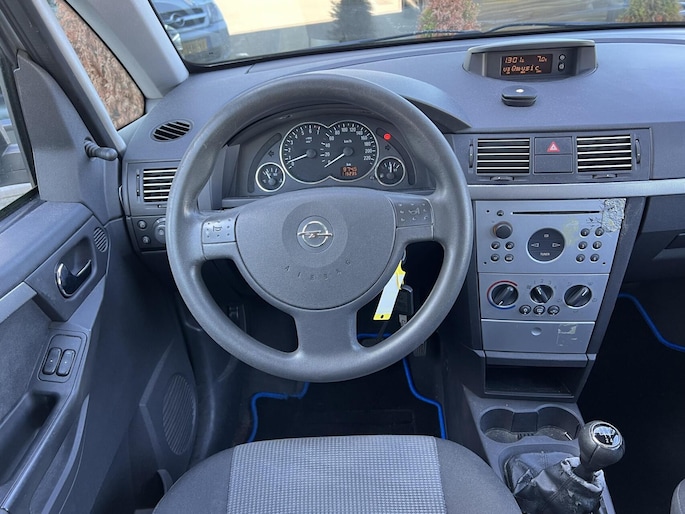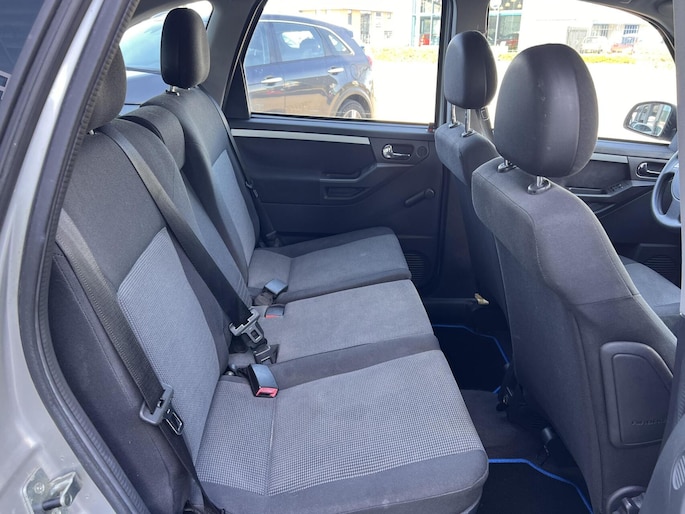 Bij het ontwerpen van de Opel Meriva stonden uw comfort en uw veiligheid centraal. Hij heeft een benzinemotor en een handgeschakelde versnellingsbak. Bij de uitrusting van deze auto horen onder meer 15 inch lichtmetalen velgen, getint glas en in delen neerklapbare achterbank.