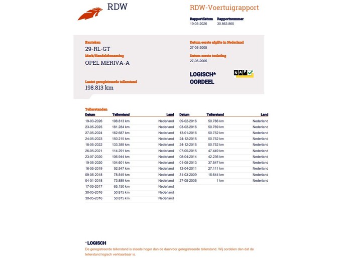 Kilometerstand gecontroleerd