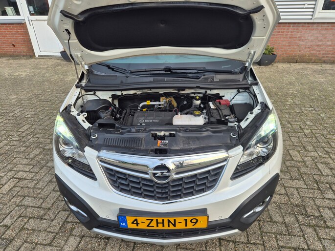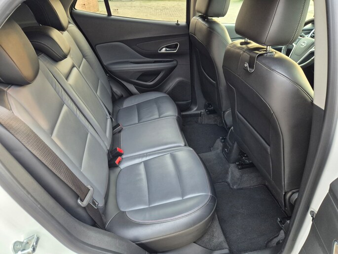 Alle technologie in de Opel Mokka is er op gericht om uw rit veilig en gemakkelijk te laten verlopen. De aandrijving van deze Opel wordt verzorgd door een viercilinder motor en een handgeschakelde zesversnellingsbak. Comfort? Luxe? Stijl? Allemaal meegeleverd in de vorm van het lederen interieur. Tijdens gure dagen is het prettig zitten in de verwarmbare voorstoelen. Een ommetje of een lange trip? De comfortstoelen zorgen elke keer voor een goede zithouding! Life is easy! In ieder geval met dit elektrisch bediende glazen panoramadak. Natuurlijk kunt u zonder. Maar waarom? Lekker toch, zo'n verwarmd stuurwiel? Met de krachtige xenonverlichting heeft u optimaal zicht in het donker. U wordt in deze auto ook getrakteerd op 18 inch lichtmetalen velgen, warmtewerend glas, in delen neerklapbare achterbank en snelheidsafhankelijke stuurbekrachtiging.
