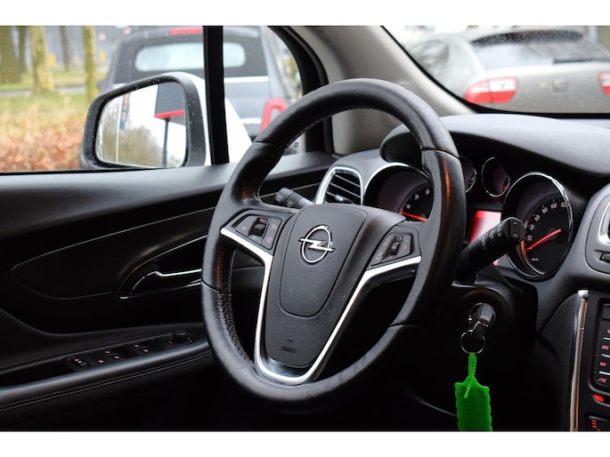 Wanneer u achter het stuur van deze Opel Mokka kruipt, ervaart u het ongeëvenaarde Duitse vakmanschap die hem tot een klasse apart maakt. De aandrijving komt voor rekening van een benzinemotor en een handgeschakelde zesversnellingsbak. Het lederen interieur is een stijlvolle extra van deze Opel Mokka. Bestuurder en bijrijder krijgen een warm welkom: deze Opel Mokka is voorzien van verwarmbare voorstoelen. Ontspannen rijden in een optimale zithouding: daarvoor zorgen de comfortstoelen. Houdt u van frisse lucht en van licht dan zit u helemaal goed met het elektrisch bediende panoramadak. Fijn plusje, zeker in de kille dagen, is het verwarmd stuurwiel. U wordt in deze auto ook getrakteerd op 17 inch lichtmetalen velgen, extra getint glas, in delen neerklapbare achterbank en snelheidsafhankelijke stuurbekrachtiging.