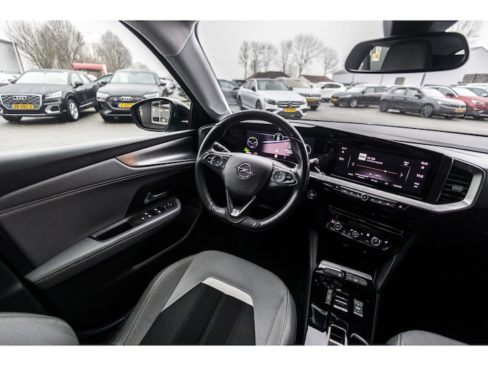 De standkachel verwarmt het interieur voor. Dat betekent meer comfort voor u en minder slijtage voor de auto. Met het digitale dashboard heeft u essentiële info in beeld. Altijd, overal. Kinderfietsje niet gezien bij het inparkeren? Dat gebeurt u nooit meer. Daar zorgt de achteruitrijcamera wel voor! Deze Opel Mokka-e is 'connected'. Belangrijke functies worden permanent gemeten en zijn uit te lezen via een speciale app, ook op afstand. De bediening van het audiosysteem en het navigatiesysteem gebeurt met knoppen op het stuur en als u wilt zelfs met uw stem. De audio is overigens voorzien van DAB-radio voor een altijd heldere ontvangst. Ook automatische airconditioning, regensensor, cruise control, keyless entry, automatisch dimmende binnenspiegel en isofix-aansluiting zijn aan boord.