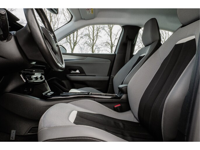 In de Opel Mokka-e heeft uw veiligheid en die van uw omgeving prioriteit. De camera van de verkeersborddetectie herkent verschillende soorten verkeersborden en toont deze op het dashboard. Het Lane-keeping systeem doet precies wat nodig is: waarschuwen en corrigeren bij onbedoelde overschrijding van de rijstrooklijnen. Mindert een voorligger onverwachts te veel vaart, dan komt de forward collision warning in actie en waarschuwt meteen. In deze Opel vinden we verder een hill hold functie, vermoeidheidsherkenning en autonoom remsysteem.