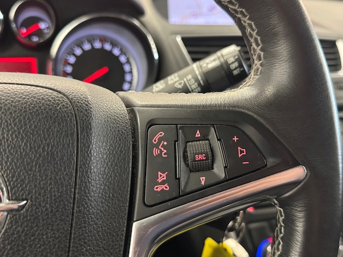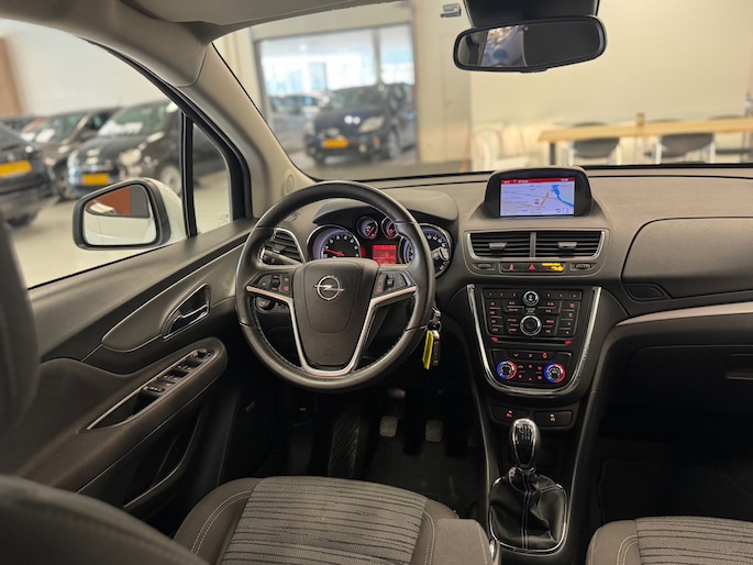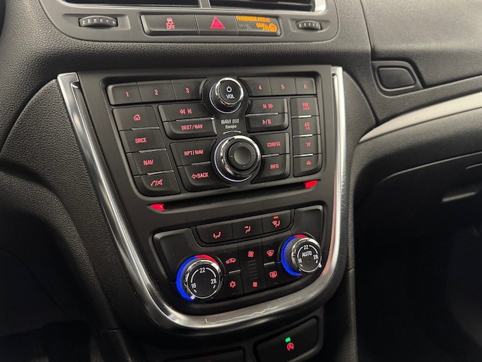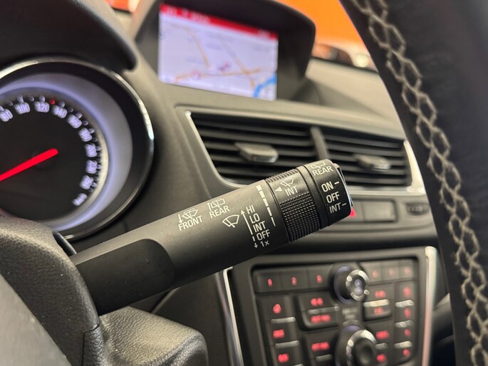 In deze Mokka vindt u schakelaars op het stuur om het audio-installatiesysteem te bedienen en het navigatiesysteem. Dankzij electronic climate control is het interieur behaaglijk warm of verfrissend koel. Inparkeren zonder angst voor schade. De parkeersensoren helpen u om moeiteloos in de kleinste parkeervakken te manoeuvreren. Om de veiligheid onderweg te verhogen, heeft deze Opel zowel een automatisch inschakelbare verlichting als een regensensor aan boord, zodat hij zelf de verlichting en de ruitenwissers kan inschakelen. Stel de cruise control in op de gewenste snelheid en u rijdt comfortabel en zuinig. De uitrusting van deze Opel is met automatisch dimmende binnenspiegel, lederen stuur, centrale deurvergrendeling met afstandsbediening en toerenteller behoorlijk compleet.