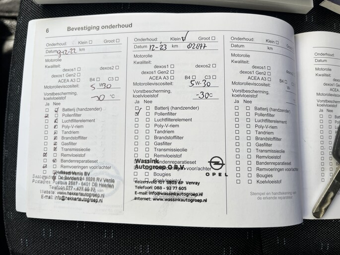 Onderhoudsboekjes: Aanwezig