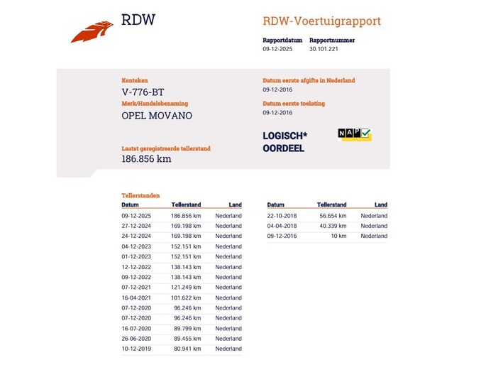 Kilometerstand gecontroleerd