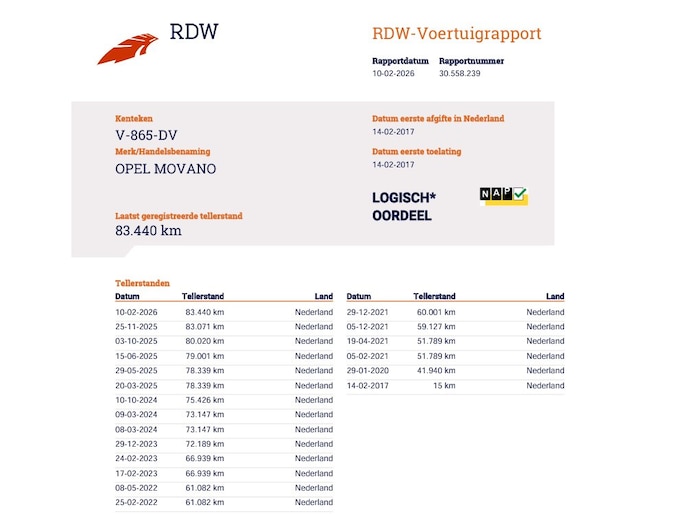 Kilometerstand gecontroleerd