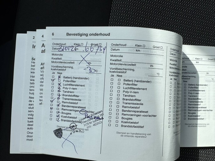 - Vloeistoffen worden allemaal gecontroleerd en zo nodig op peil gezet
