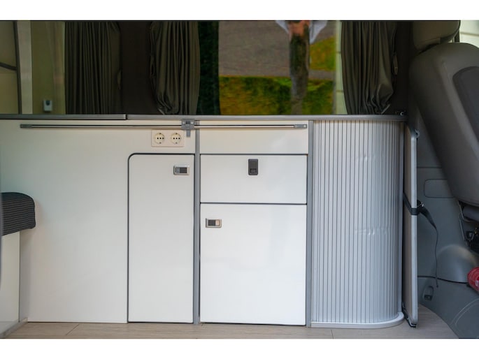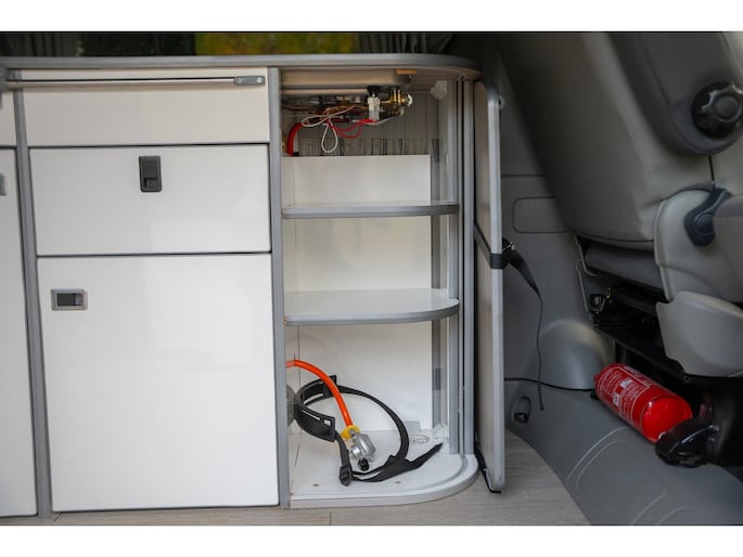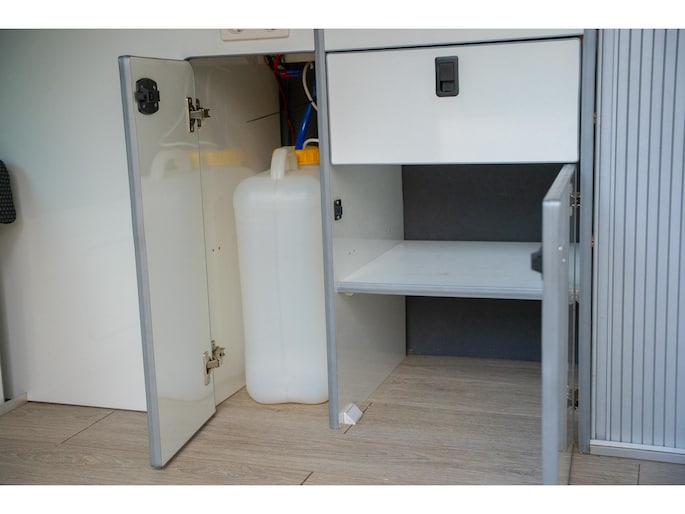 Er is voldoende opbergruimte beschikbaar in de kampeerbus.
