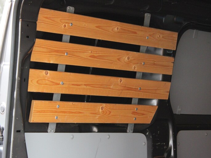 - Houten vloer met anti-slip coating en aluminium randen incl. houten zijwandbekleding en wielkastbescherming in laadruimte (Houten vloer in laadruimte met anti-slip, zijwandbekleding laadruimte) (GB38)