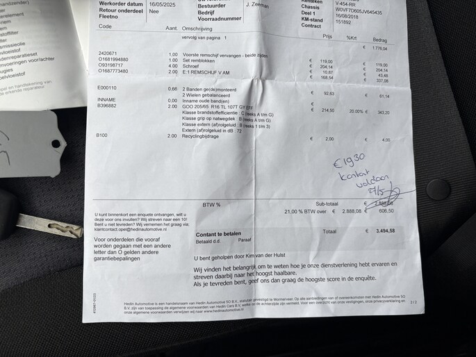 Kilometerstand gecontroleerd