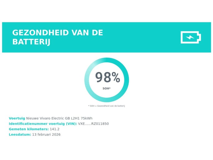 Verkoopprijs is rijklaar inclusief onderhoudsbeurt volgens fabrieksschema, uitgebreide afleveringscontrole, fabrieksgarantie tot en met 29 maart 2027, 12 maanden pechhulp, poetsen en schoonmaken, vol accupakket en veiligheidspakket. Tevens voorzien van de optie e-PTO 400V ((electric Power Take-Off) De e-PTO 400V-optie op de Opel Vivaro Electric geeft je de mogelijkheid om krachtige elektrische apparatuur of opbouwen rechtstreeks van stroom te voorzien vanuit de elektrische bedrijfswagen, en zo de Vivaro multifunctioneel in te zetten als werkplatform of mobiele energiebron. Let op! Verkoopprijs is exclusief BTW